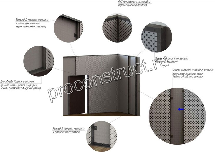 Снизить уровень шума в помещении до предельно допустимого значения помогут качественные шумопоглощающие панели российского производителя ПрофМеталлГрупп. Для выполнения данной функции предназначена серия стеновых панелей. Она подходит для облицовки стен и потолков в помещениях с высокой влажностью, запылённостью, отсутствующим отоплением. К таким помещениям относятся лифтовые шахты, производственные помещения, вспомогательные помещения, в которых установлено шумное оборудование. Лицевая сторона шумопоглощающих панелей отличается наличием перфорации, шумоотражающие панели не имеют перфорации.